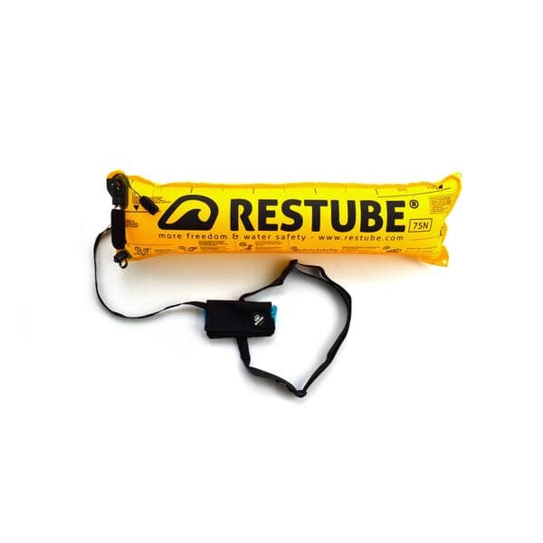 Förpackningen innehåller en Restube aktiv flottör med bälte, en 16 g koldioxidpatron och bruksanvisning. NOTERA! Använd endast original koldioxidpatroner, de är saltvattenbeständiga och separat testade.