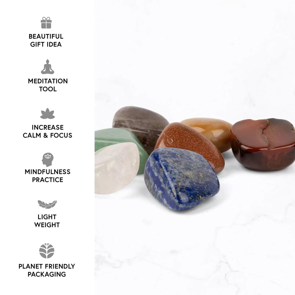 Chakrastenar tros balansera ditt naturliga sinnestillstånd och främja mentalt välbefinnande. De kan placeras på kroppen för att ta bort negativ energi och låta din egen inre energi ta dess plats. Stenarna är lämpliga som en del av en meditationsövning, reikibehandling eller energiterapi. För att rengöra kristallerna kan du använda en sångskål för att skapa ljudvibrationer som tar bort envis energi som sitter fast i kristallerna.