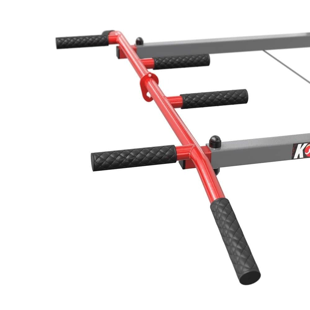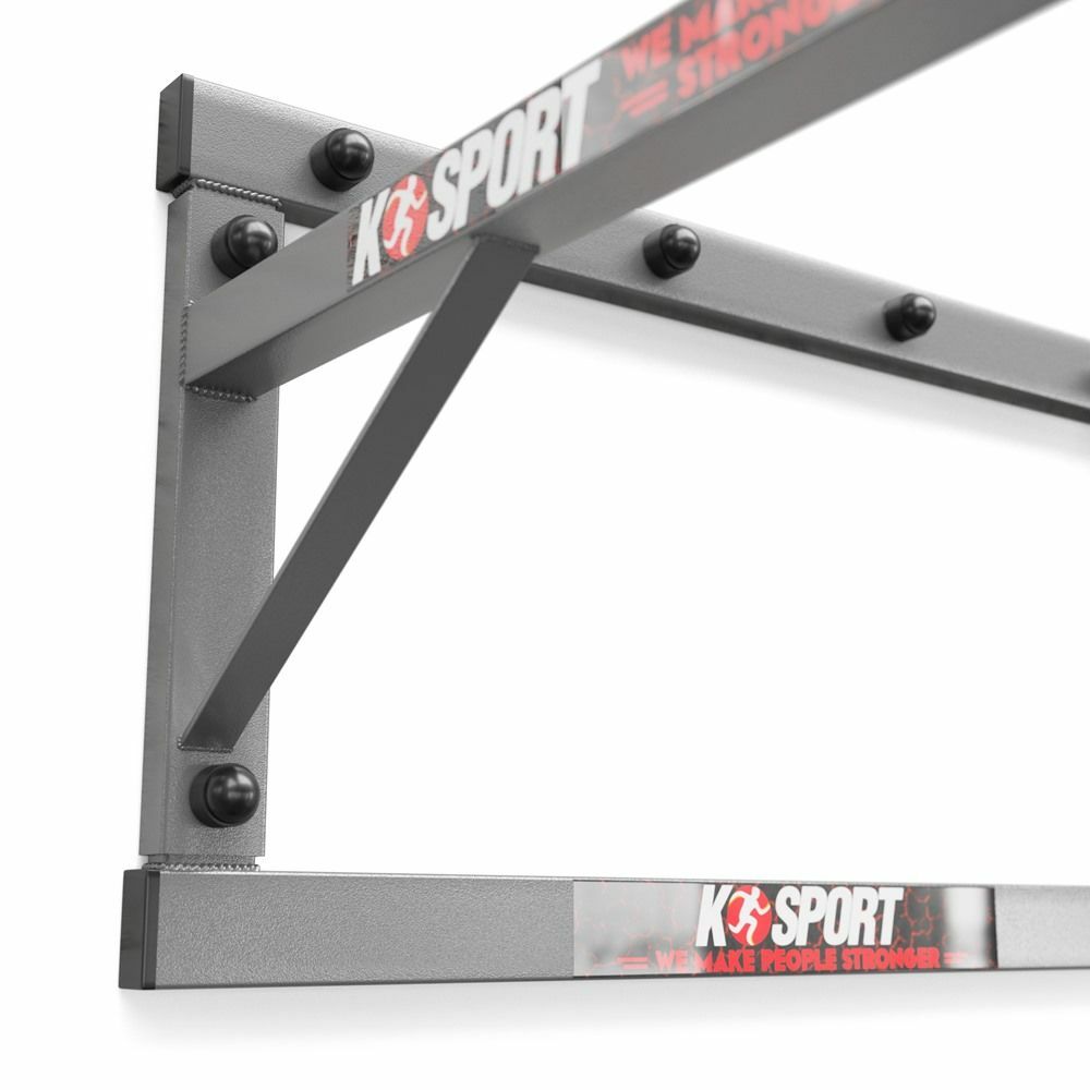 Pull-up är en mångsidig överkroppsstärkande rörelse som nu är enkel att träna hemma! K-Sport chin-up bar har inåtvända, utåtvända och sidovända handtag som gör att du kan träna olika muskelgrupper, med tre olika greppvarianter. Gummibeläggningen på handtagen säkerställer ett stadigt grepp även med svettiga händer. Den här mångsidiga chin-up-stången har även en fästkrok för en boxningssäck.