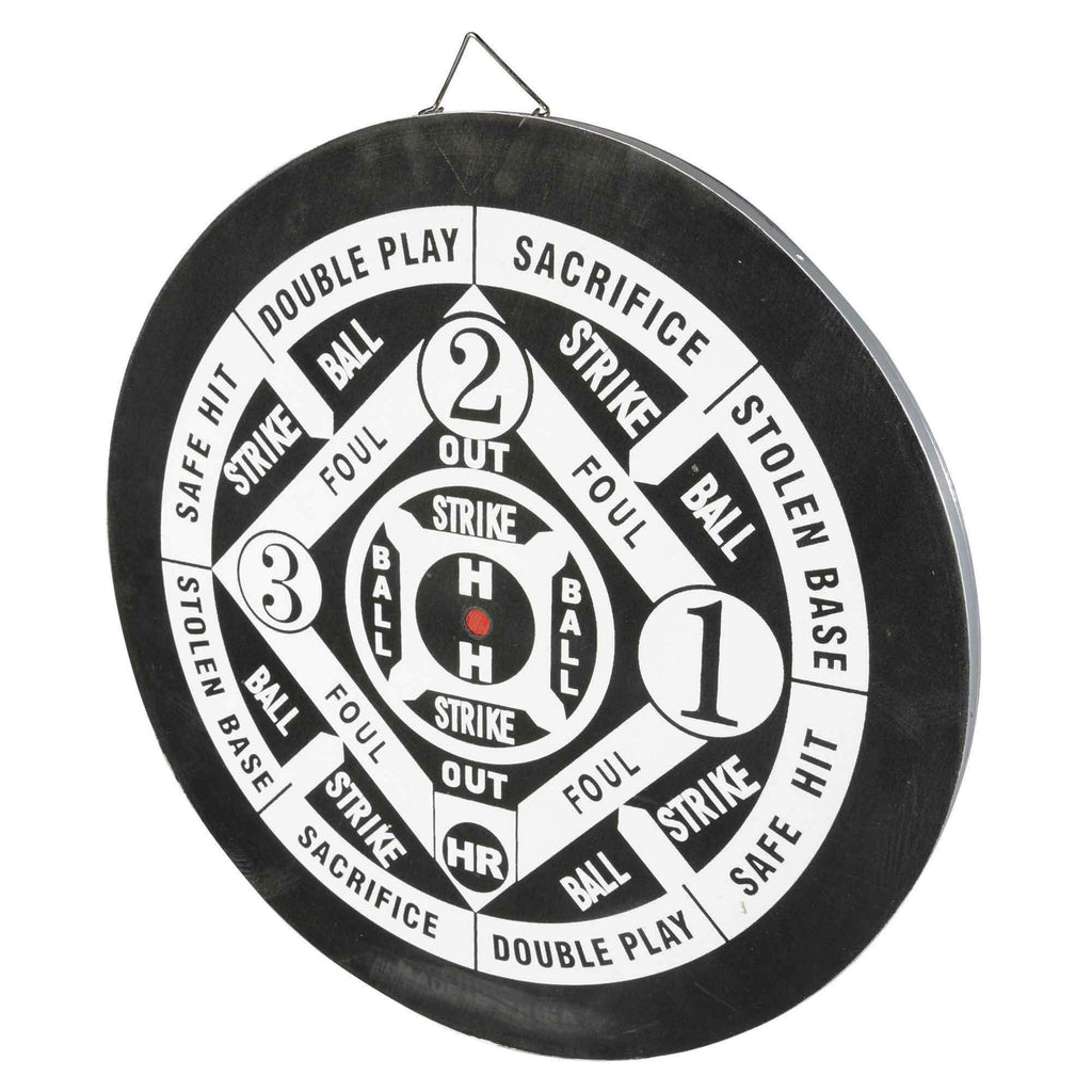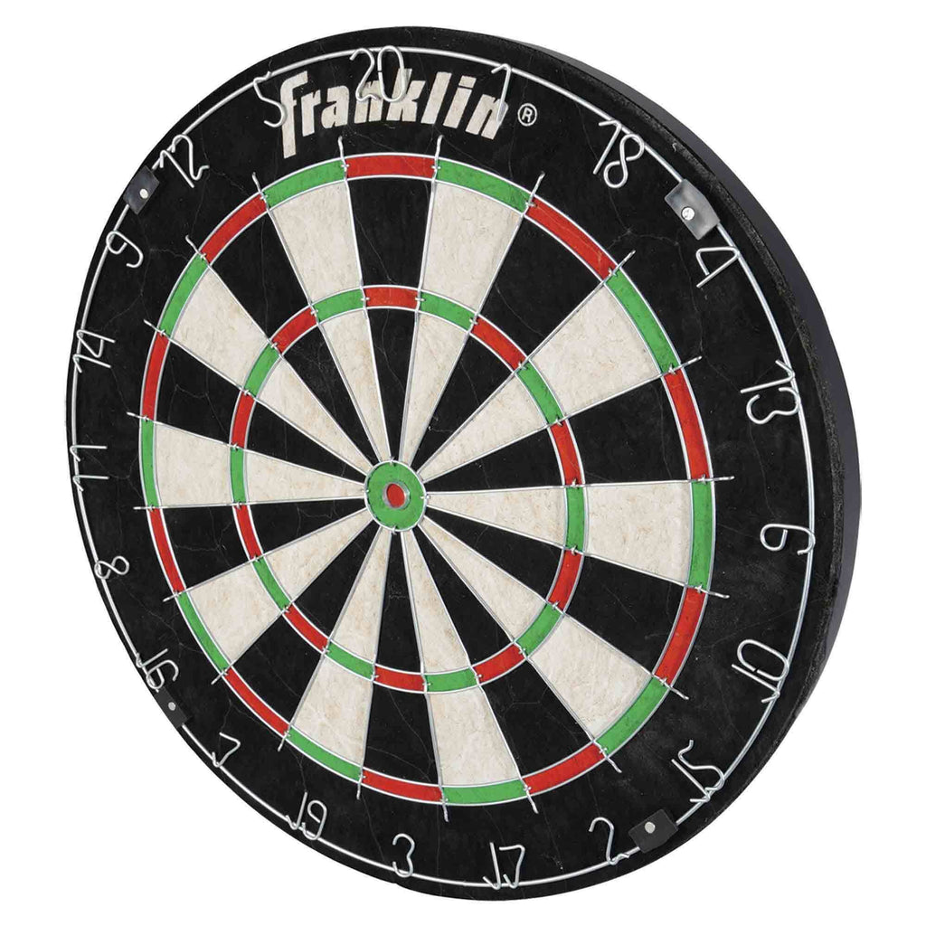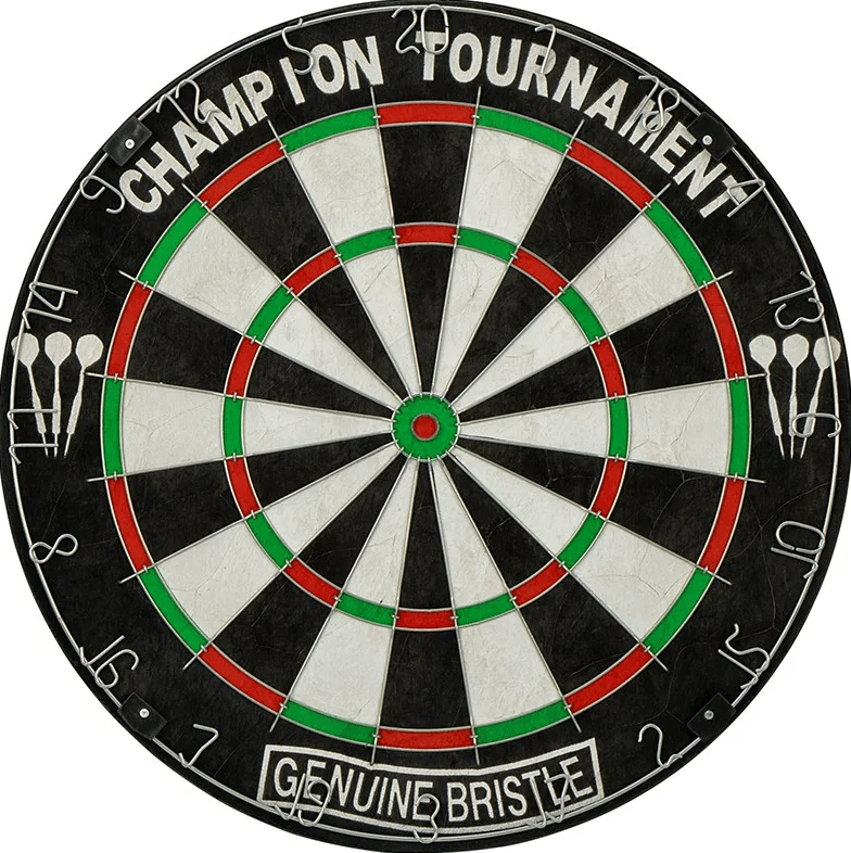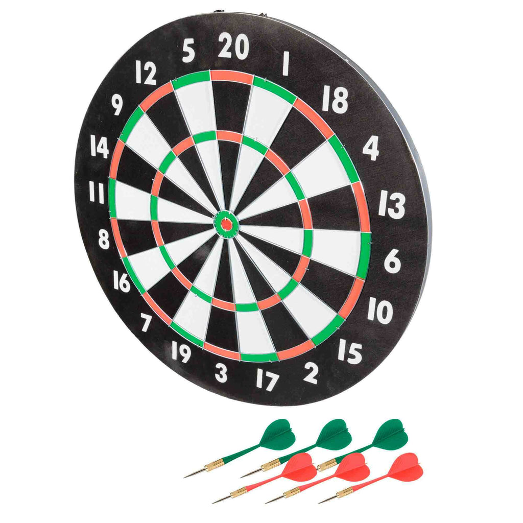 En traditionell darttavla med metalliska siffror och skiljelinjer. Lämplig för hemmabruk, pubar och gårdsspel.