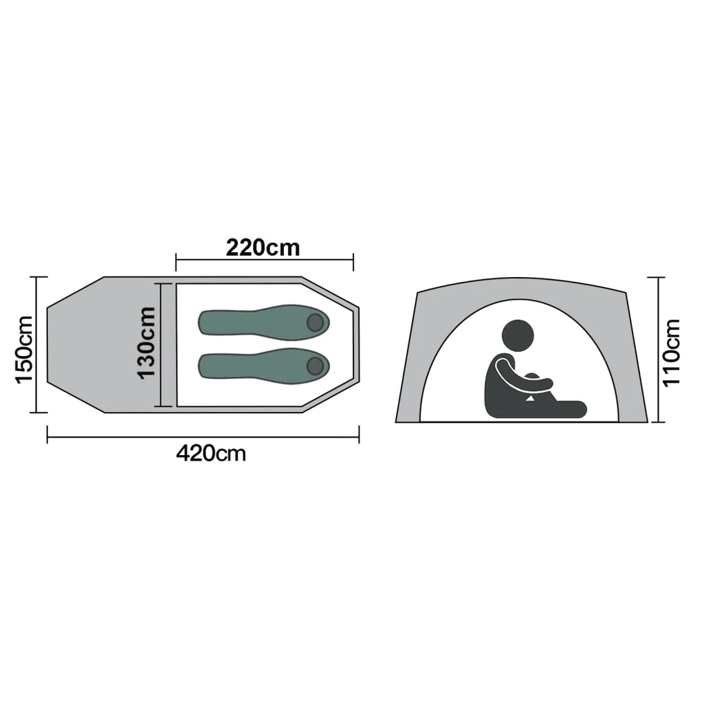 Detta tunneltält för två personer är både stabilt och kompakt, vilket gör det perfekt för alla utmanande utomhusutflykter, oavsett väder. Designad för användning under tre säsonger, den har en rymlig absid skyddad av en fukttålig bas. Dessutom förhindrar tältets ventilation i båda ändarna att fukt samlas inuti.