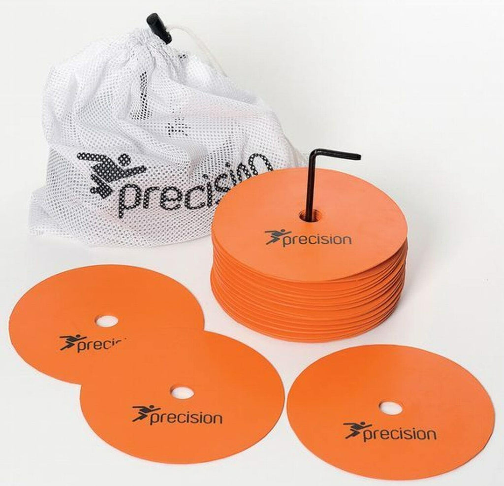 Välj mellan orange och gula markeringsplattor, båda syns tydligt på alla typer av plattformar. Lämplig för både inomhus- och utomhusbruk. De tunna och lätta skivorna är lätta att ta med till idrottsplatsen eller var som helst. Stapelbara tallrikar tar inte mycket plats. Praktisk förvaringsväska medföljer. Lämplig för hemmabruk, skolor eller idrottsklubbar.