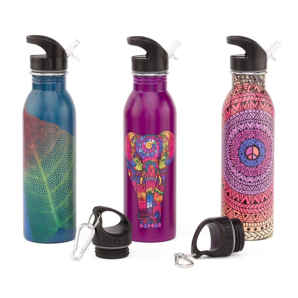 Oavsett om det är för din yogaklass eller på kontoret, reser eller strosa runt på stan: med vår bodhi dricksflaska i rostfritt stål av rostfritt stål har du alltid din favoritdrink med dig. Finns i tre olika mönster; Bodhi Leaf, Holi Elephant och Mandala. I leveransen ingår två olika lock!