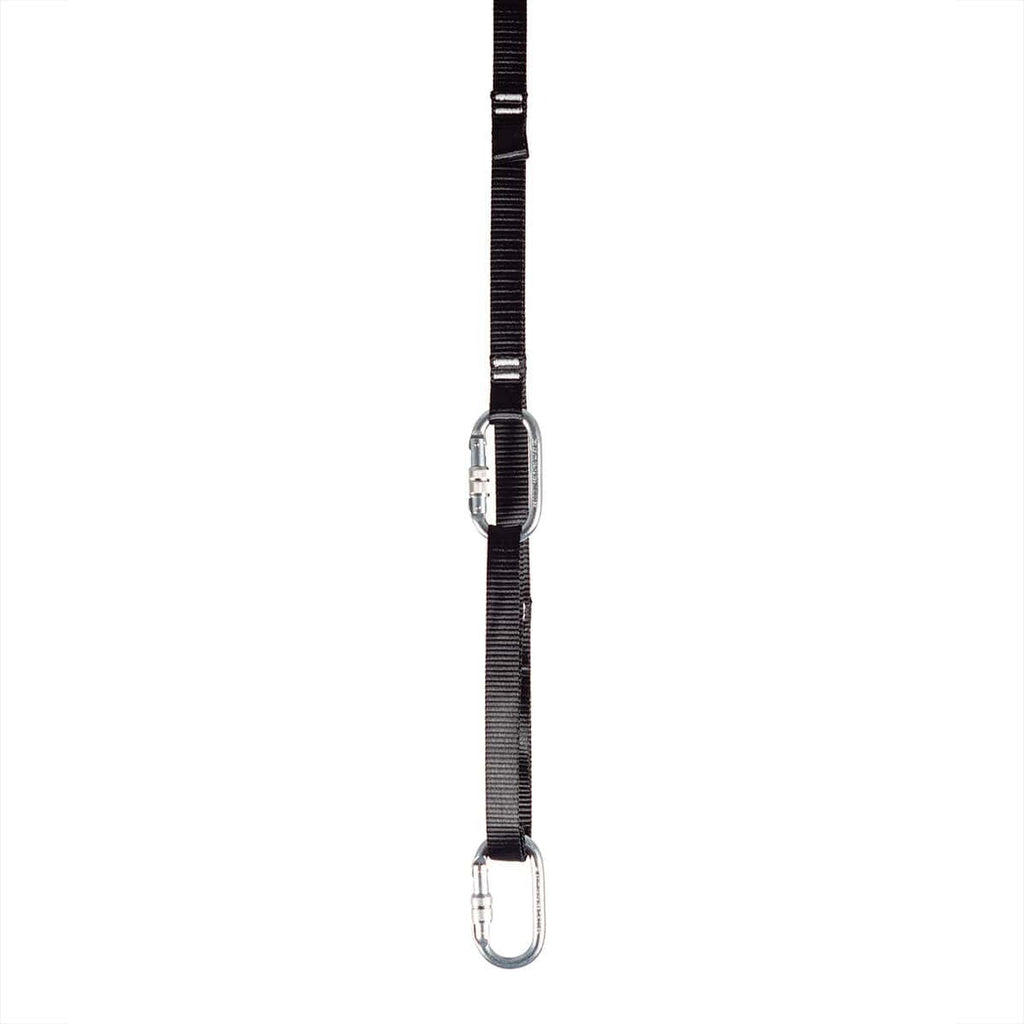 Förlängningsband med öglor för karbinhakar i tre olika höjder (justering var 12:e cm). Du kan justera höjden på hängaren genom att helt enkelt klicka på karbinhaken på önskad ögla. Paketet innehåller endast fästremmen, karbinhakar strong> och takfäste säljs separat.