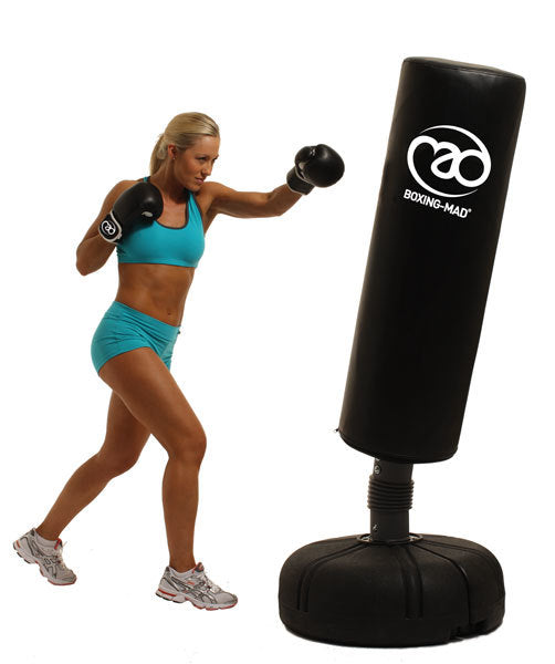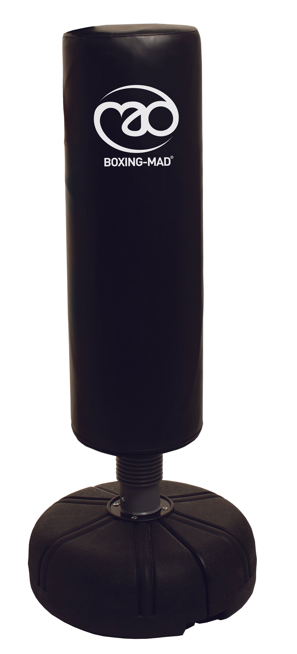 Det mycket stabila stativet kan fyllas med vatten eller sand. Stativet rymmer upp till +100 kg vatten, så att boxningssäcken inte rör sig med en mycket liten stöt. Vid behov kan underlaget göras ännu tyngre med sand eller en blandning av sand och vatten. En fristående boxningssäck är bra för utrymmen där det inte är ett alternativ att hänga påsen i taket. Lätt att fixa ur vägen när den inte används. Det rekommenderas att lämna minst 1 m utrymme runt boxningssäcken, eftersom den rör sig något med varje slag. Det är också en bra idé att lämna tillräckligt med utrymme runt väskan för att kunna öva olika steg och undvika.