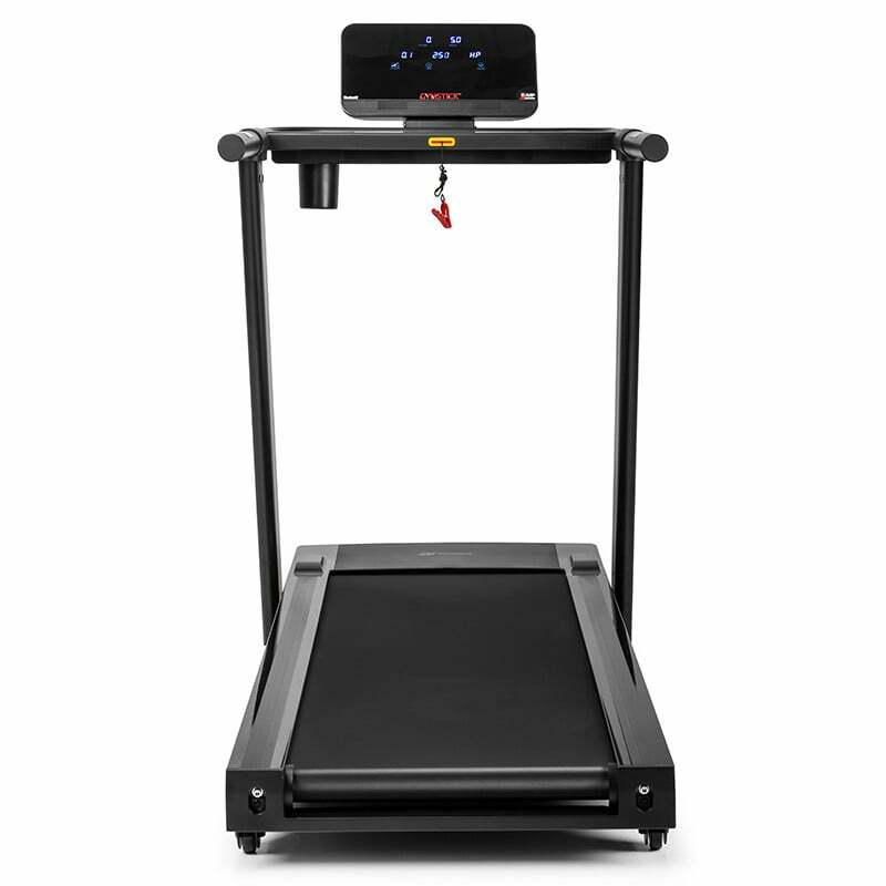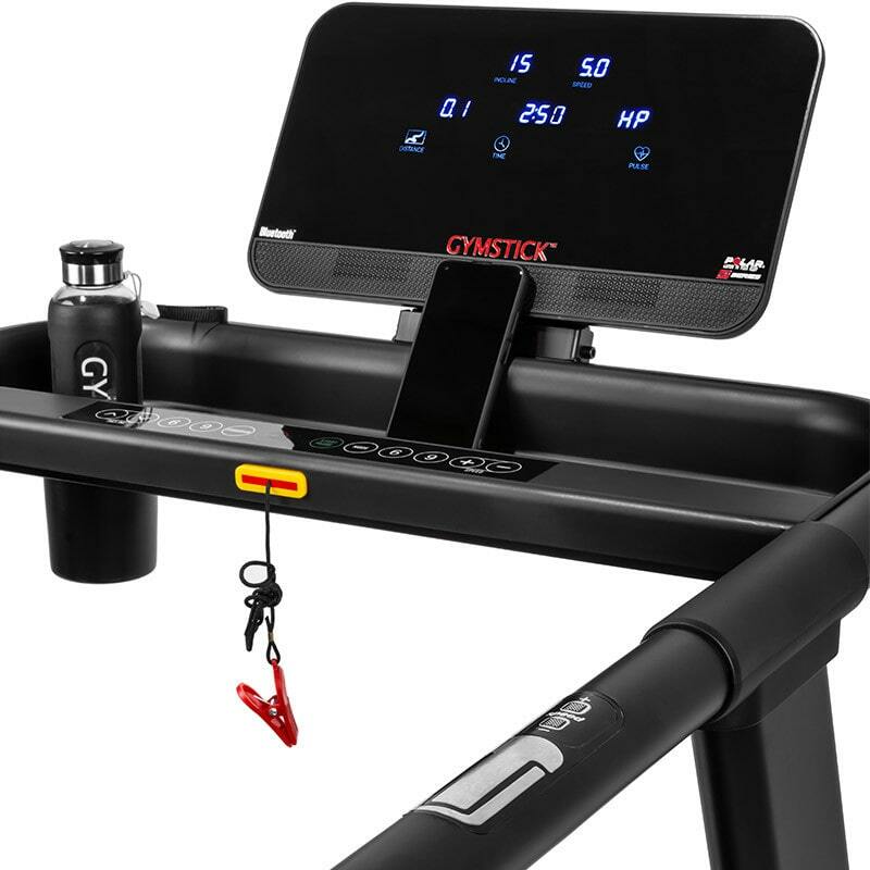 Du kan enkelt följa din tränings framsteg på den stora LED:n skärm. Displayen visar träningstid, distans, hastighet, förbrända kalorier, lutning och puls i realtid. Det finns 36 förinställda träningsprogram. Löpbandets handtag har pulssensorer, för mer exakt mätning kan du köpa ett separat pulsbälte (Polar-kompatibelt). Enheten har Bluetooth-funktionalitet, så du kan söka efter fler träningsprogram i olika applikationer som Zwift, Kinomap och Fitshow.