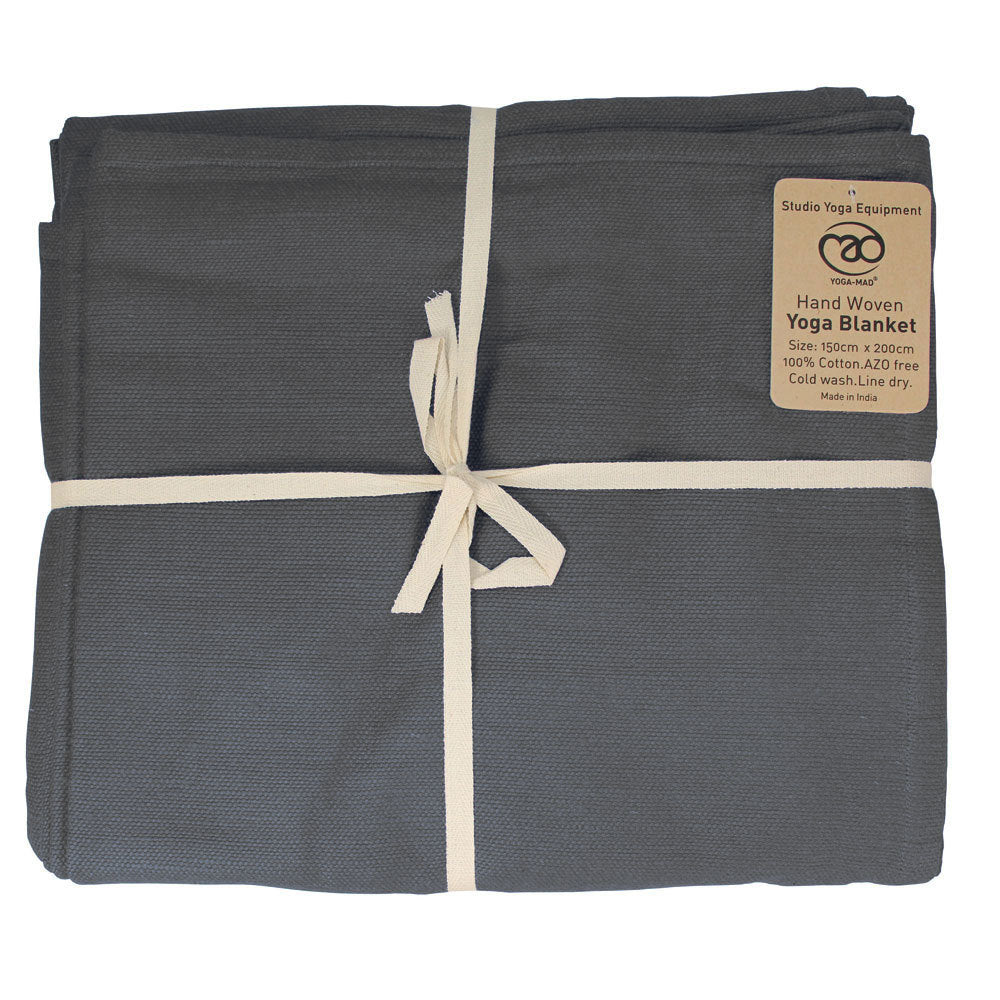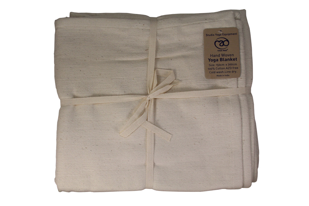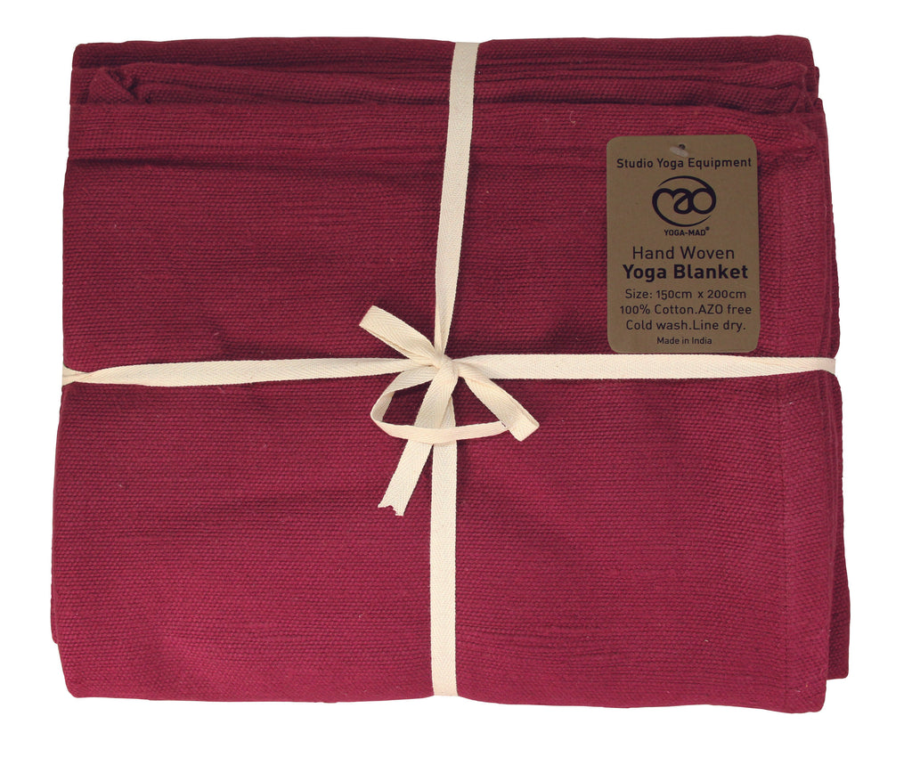 Täcken är en mycket mångsidig rekvisita som kan vikas för att ge höjd i sittande positioner och för att stödja huvudet och axlarna i inversioner. De kan rullas för att stödja nacken i lutande lägen och bakåtböjningar; och för att lindra belastningen på knäna eller anklarna i positioner som hjälten. Yoga-Mad-mattor är 100 % handvävd bomull och är mjuka och tätt vikta, ger bra stöd samtidigt som de håller formen - nyckeln till en bra yogamatta.