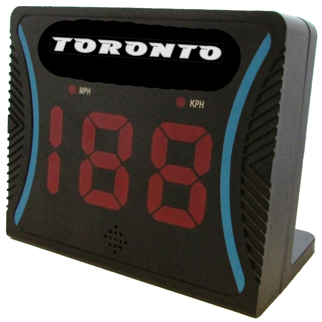 Hastighetsradar för ishockey med stor LED-display och ljudfunktioner.