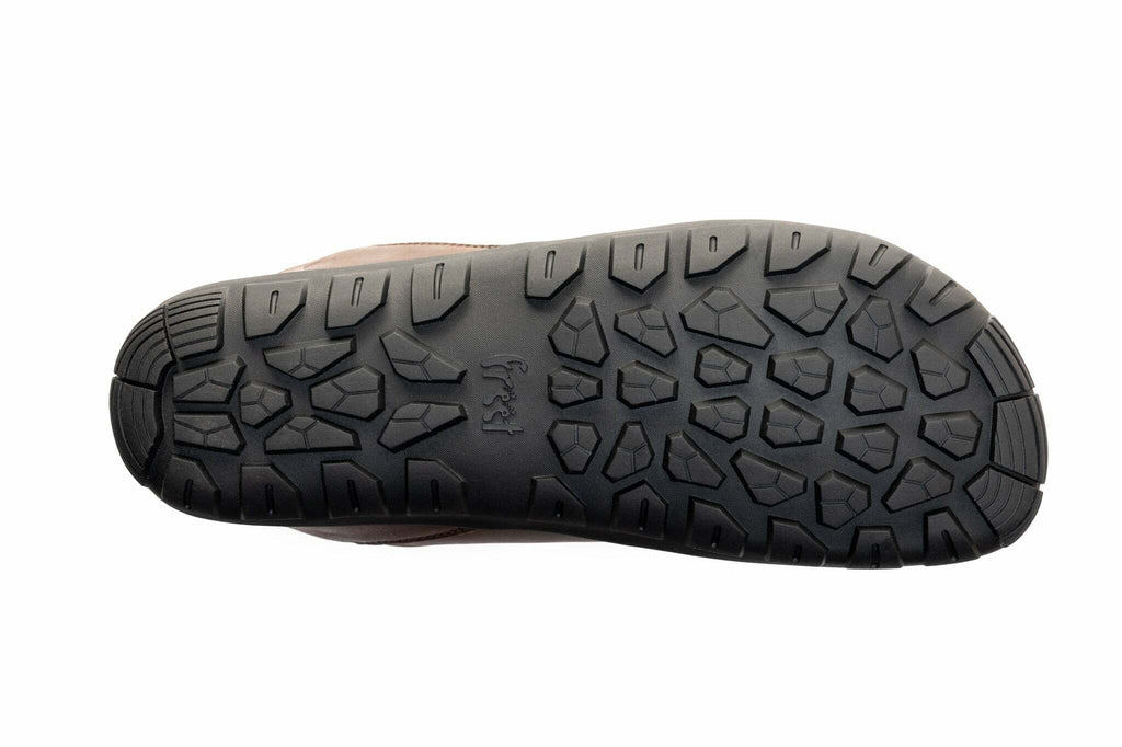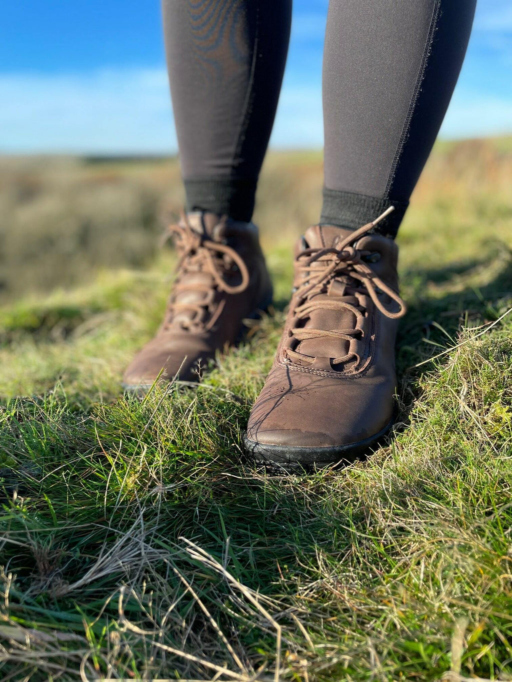Ibex barfotaskor är designade för krävande och kvalitetsmedvetna vandrare. Ytan på skon är gjord av högkvalitativt läder, som är behandlat för att vara vattentätt och andas. Skon har en mönstrad Hill Grip-yttersula i gummi som ger utmärkt grepp på våta och hala underlag. Om den endast bärs på asfalt/betong, kan denna yttersula slits snabbare än MultiGrip-sulan, men den ger mer grepp på leden.