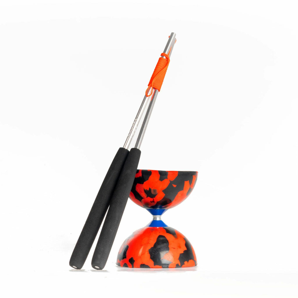 I Diabolo försöker du balansera ett rörligt föremål mellan två pinnar och snöret som förbinder dem. Ju snabbare du får diabolon att snurra, desto stabilare är det troligt att den stannar på repet. Diabolon med fast axel är bra för nybörjare då den är lite lättare att kontrollera. Den spräckliga effekten på kopparna hjälper nybörjare att känna igen när diabolon saktar ner och behöver snabba upp. Den är också något tyngre än andra medelstora diabolor, vilket gör att diabolon kan behålla sin hastighet längre, vilket ger spelaren mer tid att lära sig tricks.
