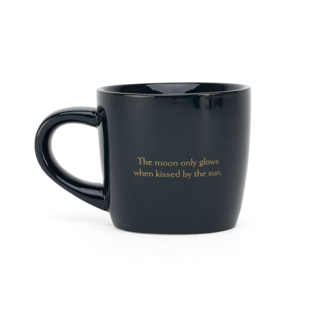 Attraktiva kaffe- eller temuggar med sol-måne-motiv. Njut av stunden - klunk för klunk. Muggfot med OM-Print. En fantastisk present till en vän eller varför inte till dig själv?