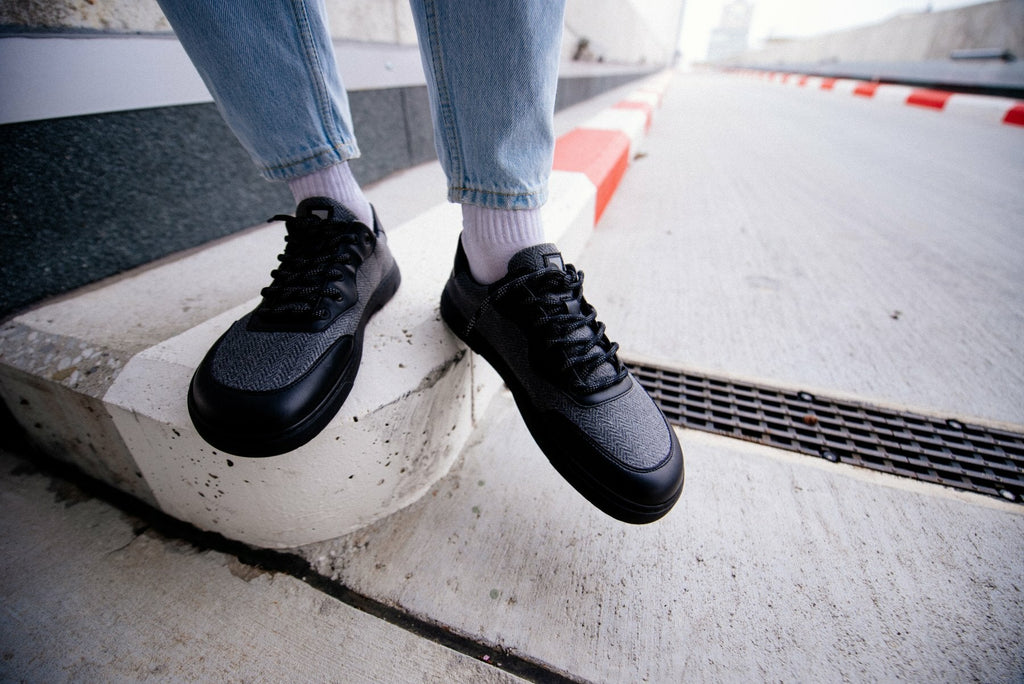 Stick ut från resten med Barebarics Kudos veganska barfotasneakers - med reflekterande designelement som får din personlighet att höja sig över det vanliga. Bär komforten av barfota och kombinera din stil med ett enkelt fiskbensmönster.