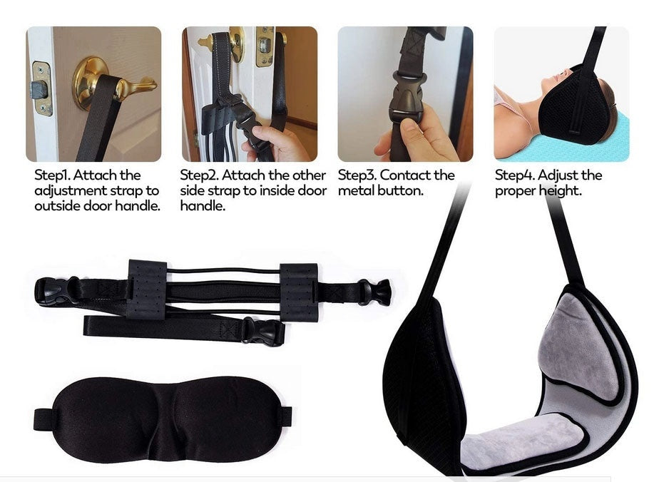 Det är lätt att bära nackhängmattan. Fäst den bara på en dörr och luta dig tillbaka lugnt samtidigt som du inte dekomprimerar långsamt. Börja använda 5 till 15 minuter åt gången.