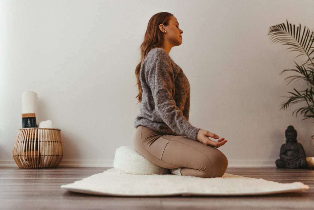 - Yoga- och meditationskudde med ett läckert överdrag i merinoull