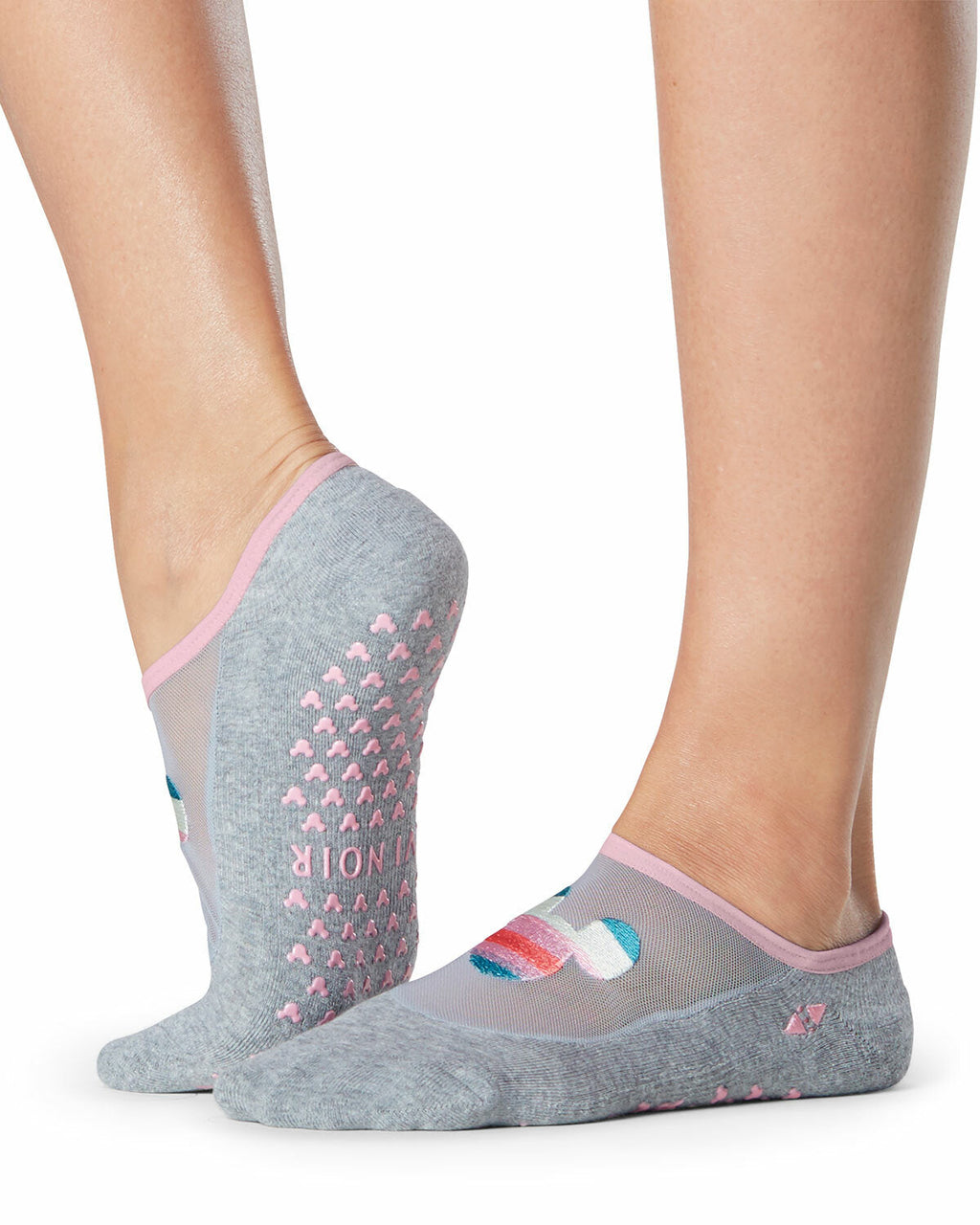 Håll dig sval i Maddie gripstrumpan med smart mesh, utsmyckad med bara en touch av gnistra. Hennes lågprofilerade design kramar precis under vristen, medan Tavis stjärnstrumpa mönster rör dig självsäkert genom barre, pilates och yogaklasser. Tekniska funktioner: