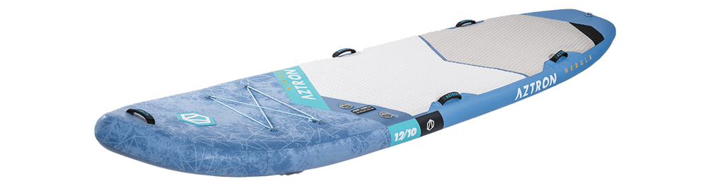 Aztron-dimman är en uppblåsbar stödbräda för två till tre personer. Perfekt för en familj eller en grupp vänner att tillbringa lite fritid tillsammans. Multi-person sup-brädan passar även för till exempel supyoga eller trickträning.