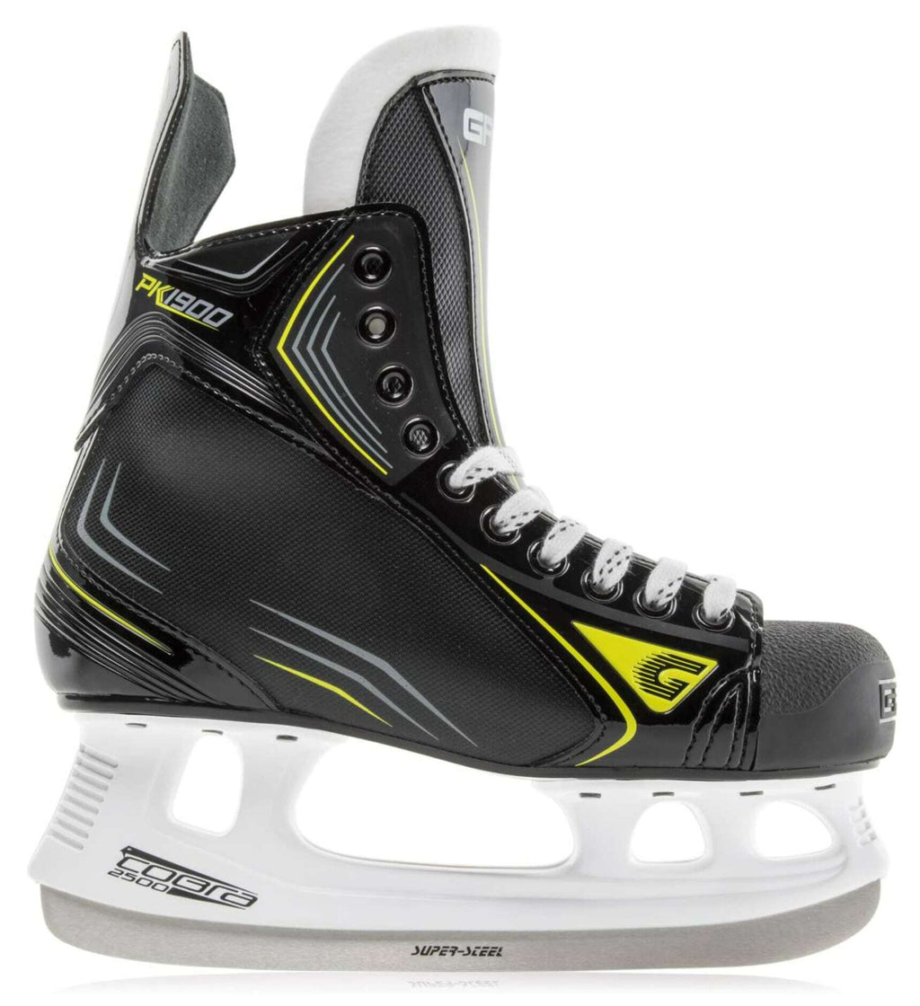 PK 1900 hockeyskridskor är designade för att fungera i alla spelsituationer. God styrbarhet och tillräckligt fotledsstöd möjliggör snabb reaktion på puckens rörelser. Tack vare den mycket tjocka ankelstoppningen och skumfodrade tåskyddet ger skridskonen bästa möjliga skydd och komfort för foten. Skon kan värmemodifieras. Det fuktavvisande och snabbtorkande innerfodret håller tårna torra under spelet. Skridskorna är lämpliga för inomhus- och utomhusis.
