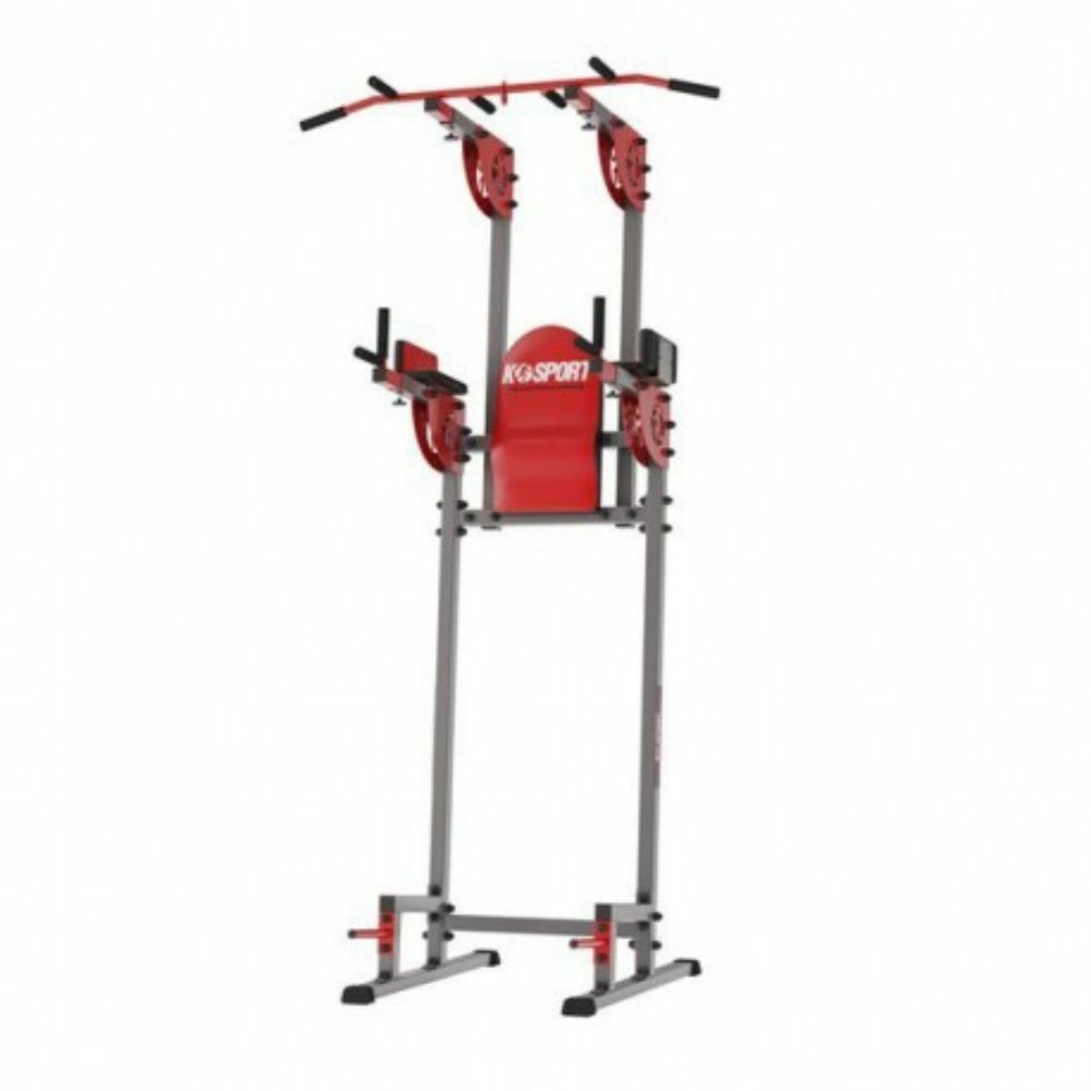 Med K-Sport powertornet kan du träna chin-ups, dips, armhävningar och magstärkande benlyft. Enheten passar in i ett relativt litet utrymme jämfört med dess många funktioner. Tack vare den smarta designen och formen på benen håller den sig på plats. Det finns tre olika greppalternativ på chin-up-stången vilket gör att du kan träna olika muskelgrupper. Dessutom har stången en färdig plats för att fästa en boxningssäck.