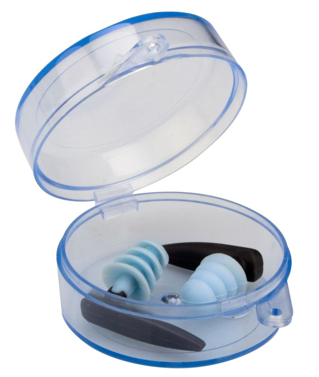 Ergonomiskt formade TPE/PP-öronproppar för simning. Den svarta "handtagsdelen" gör öronpropparna extra lätta att installera och ta bort från örat. Den avancerade tätningen håller effektivt vatten borta från öronen. Levereras med en praktisk förvaringsbox. Avsedd främst för vuxna.