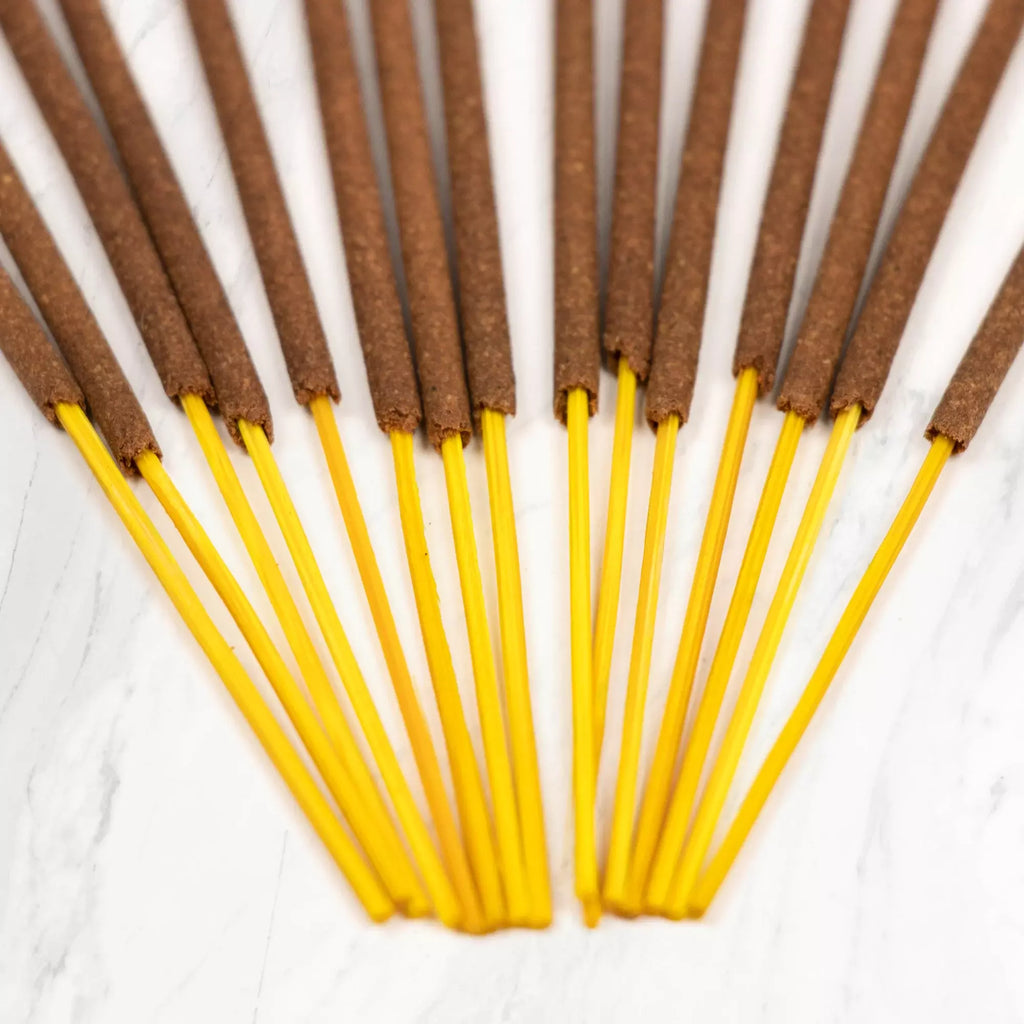 Användning: Bränn alltid rökelse på en icke brännbar yta. Tänd en rökelsepinne från spetsen och låt lågan brinna i några sekunder innan du blåser ut den. Lämna inte rökelse utan uppsikt. Släck rökelsestaven genom att trycka den mot en värmebeständig yta. Ventilera rummet efter att du har bränt rökelse.