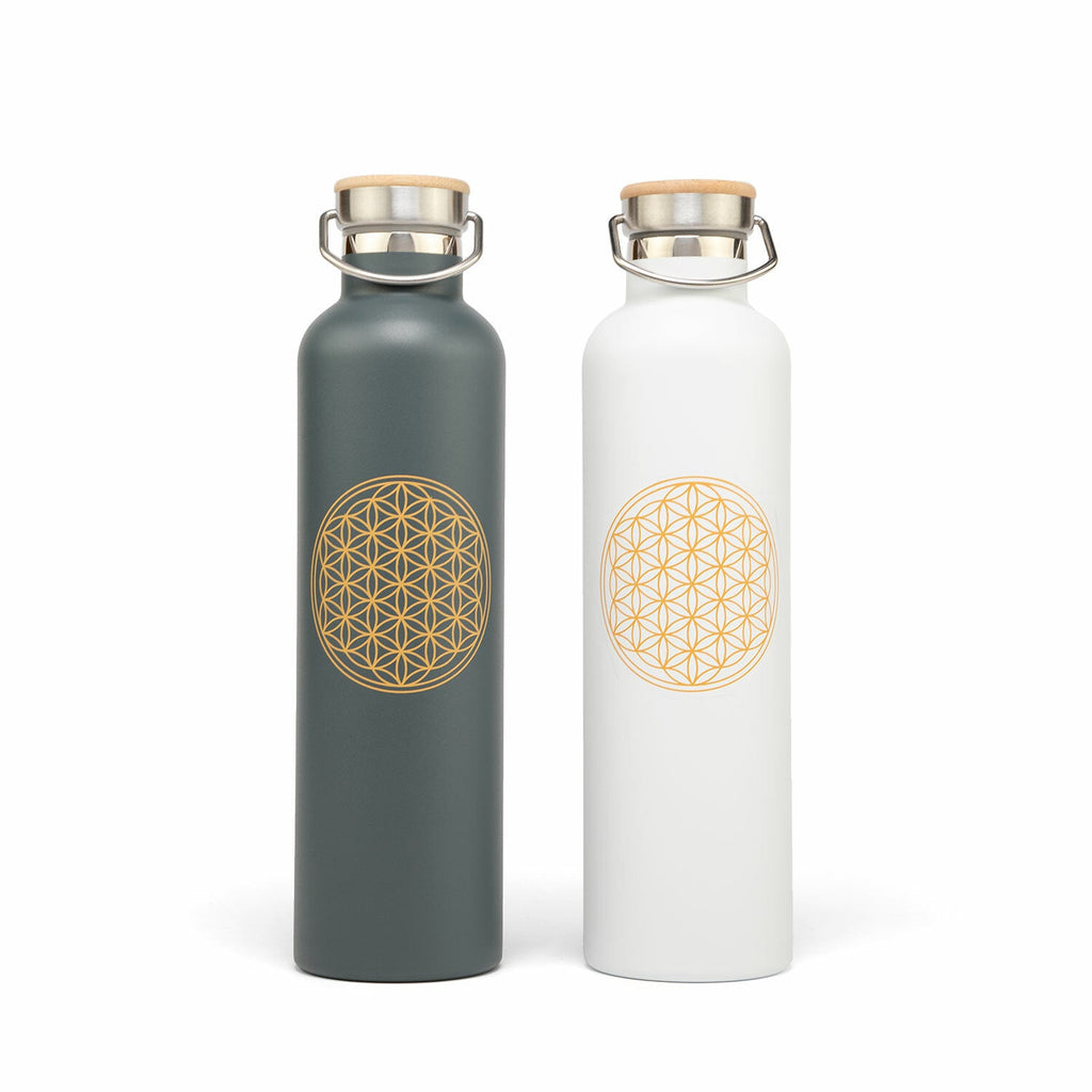 Det geometriska mönstret av Livets Blomma symboliserar att allt liv ursprungligen föddes från en enda punkt. Det är starkt förknippat med skapandet av det nya och livets början. Den vackra symbolen för Livets Blomma på sidan av en vit flaska påminner dig alltid om detta viktiga budskap - oavsett om du tränar yoga, joggar, jobbar eller vandrar i skogen.