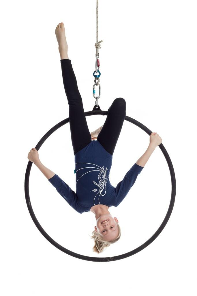 Svirveln är en anordning mellan en yogahängmatta eller luftbåge och fästremmen. Den låter dig träna spinningtekniker utan att känna till det fluffiga yogatyget, repet eller fästet.