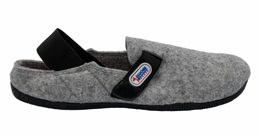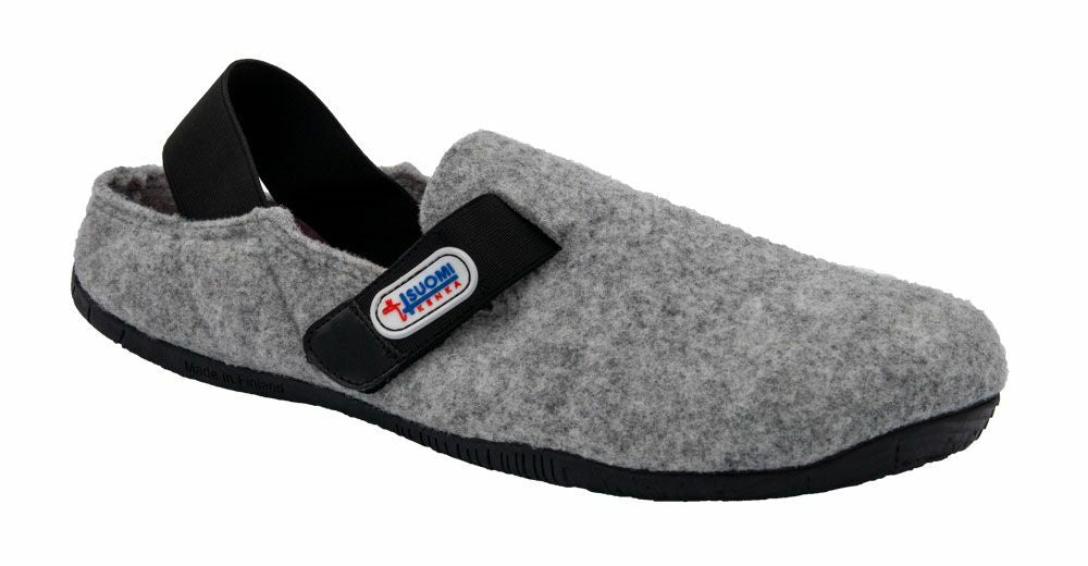 Färdig i lokalerna hos den före detta skofabriken Reino® och Aino® i Pankakoski, Finland. Suomi-Kenkä representerar modern skandinavisk design. Detta resulterade i Röd i en förbättrad och uppdaterad version av den traditionella "toffeln", som nu är mer mångsidig, hälsosammare och bekvämare.