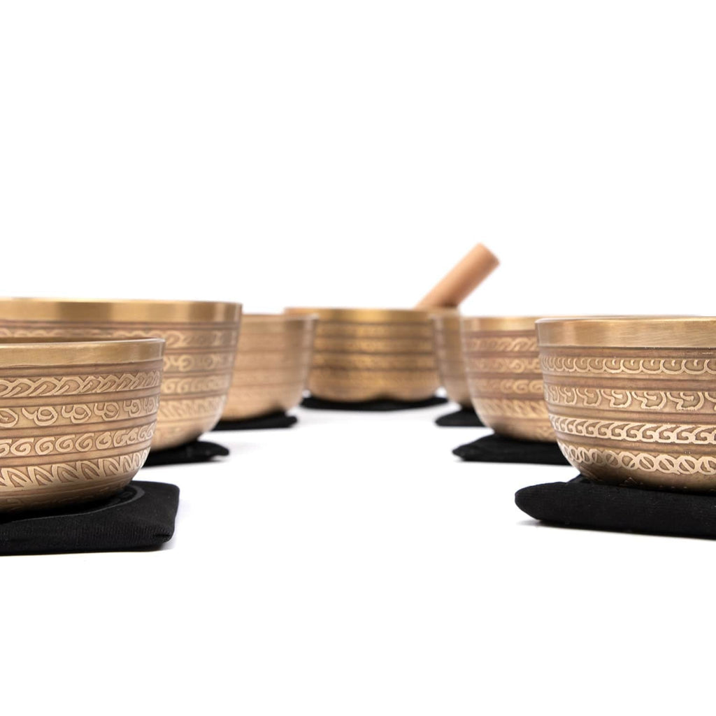 Var och en av de sju sångskålarna har en lite olika ton. Setet är därför mycket lämpligt för ljudmassage eller chakraljudterapi. Du kan också använda sångskålarna för yogans avslappningsfas eller avkopplande ljudresor. Det tibetanska sångskålssetet kommer med anfallare och matchande kudde för varje skål.