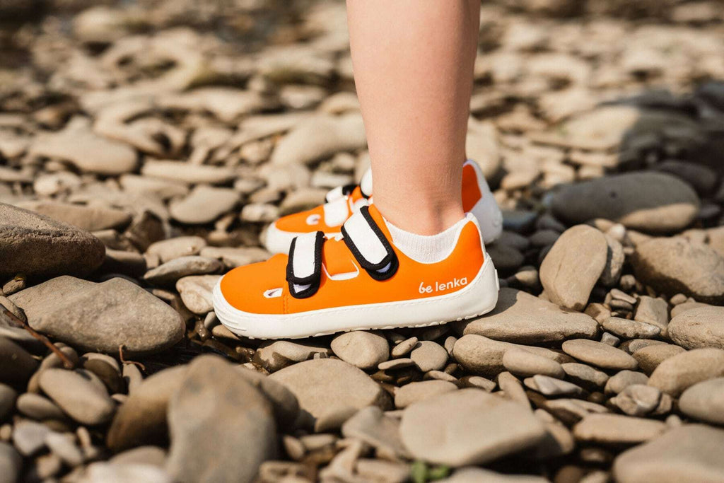 Hitta barfotaskor! Sommarskor för barn med en rolig design inspirerad av clownfiskar.