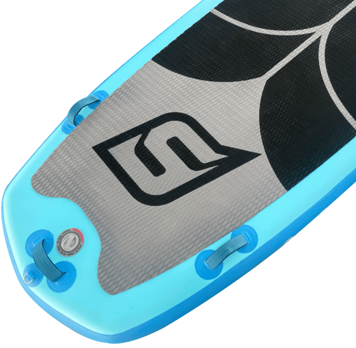 Setet innehåller en hopfällbar paddel som enkelt kan justeras till lämplig längd. Tillbehören är praktiska att förvara och transportera till utgångspunkten i en bärväska och tavlan fylls snabbt med en handdriven pump med tryckmätare. Satsen innehåller även en reparationssats vid skada.