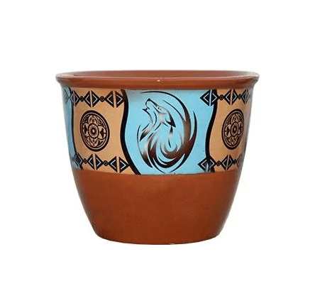 Keramikskål för att bränna fläckig rökelse. Skålen är illustrerad med några drömfångare och vargsymboler.