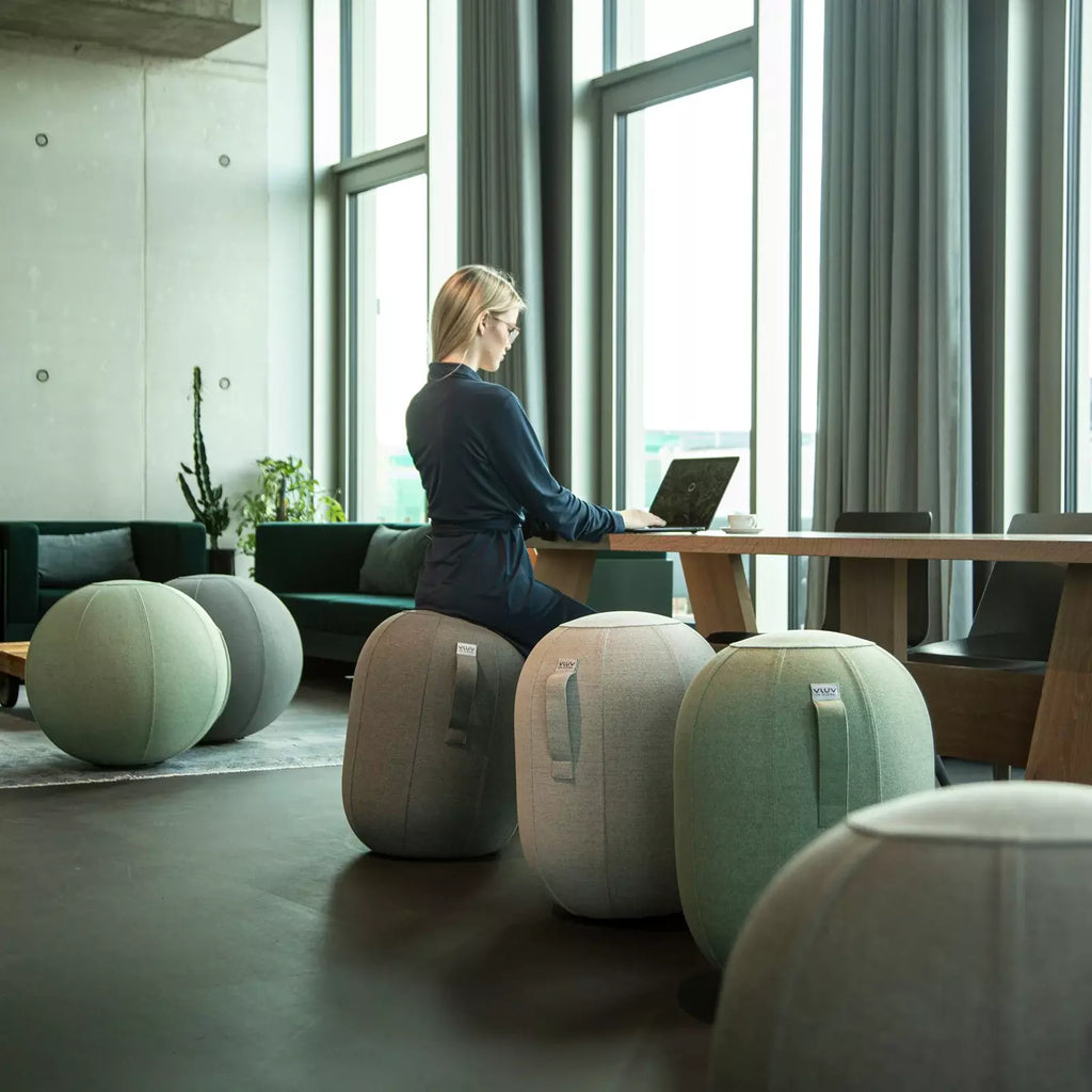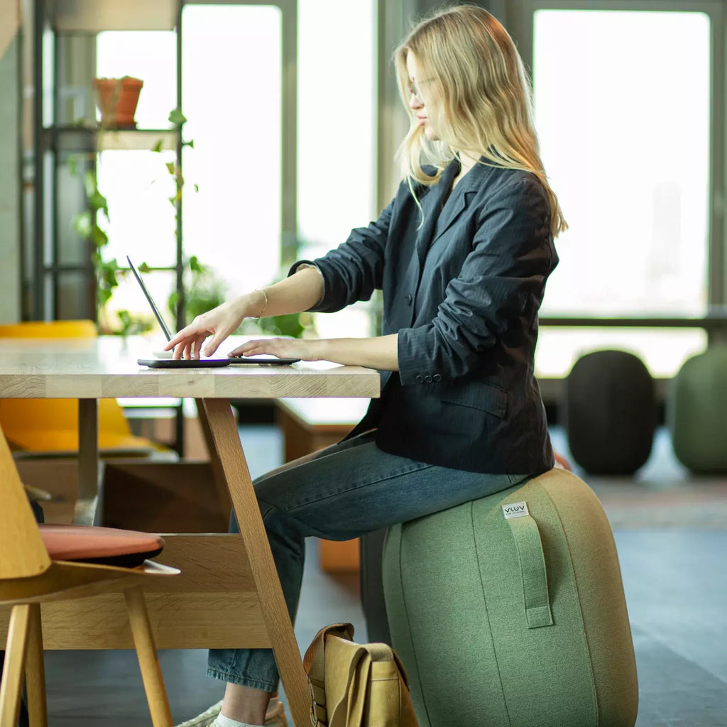 Balanskapseln erbjuder alla välkända fördelar med VLUV sittboll, men den har också många nya funktioner. Kapseln har en smalare siluett än bollen, så den lämnar mer benutrymme runt den (upp till 40%). Kapselns design ger en ännu mer upprätt sittställning och dess elastiska yta främjar konstant omedveten rörelse.