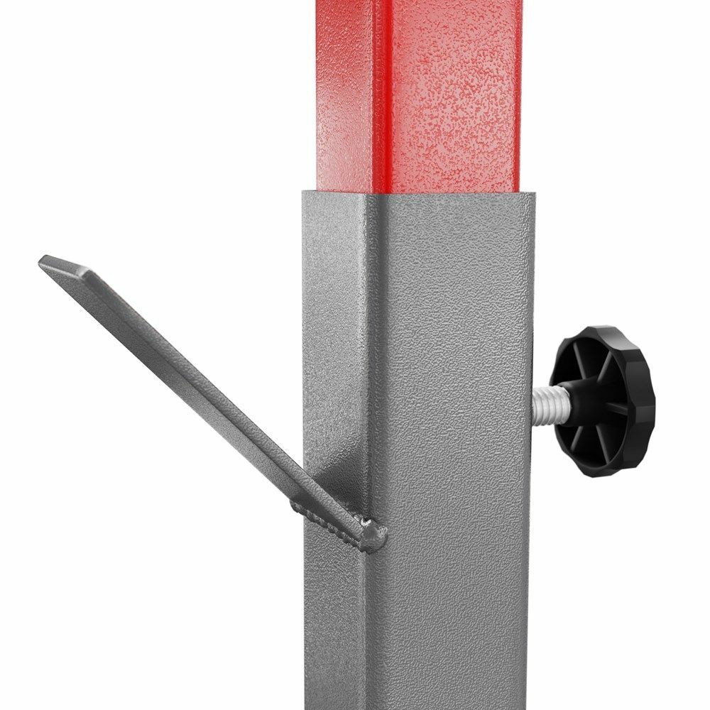 Med detta knäböjsställ kan du träna knäböj fram, knäböj bak, vertikallyft och mer! Med den K-Sport justerbara bänk kan du också använda stativet för bänkpressen. Justeringsmarginalen på 70 cm gör att stativet kan anpassas efter användarens längd och olika övningar. 7-stegsjustering var 10:e cm. Spöhållarna är vadderade. Robust benkonstruktion och pålitliga lås garanterar säker träning. Det finns gummiskydd under benen och alla bultändar är skyddade med plastlock.