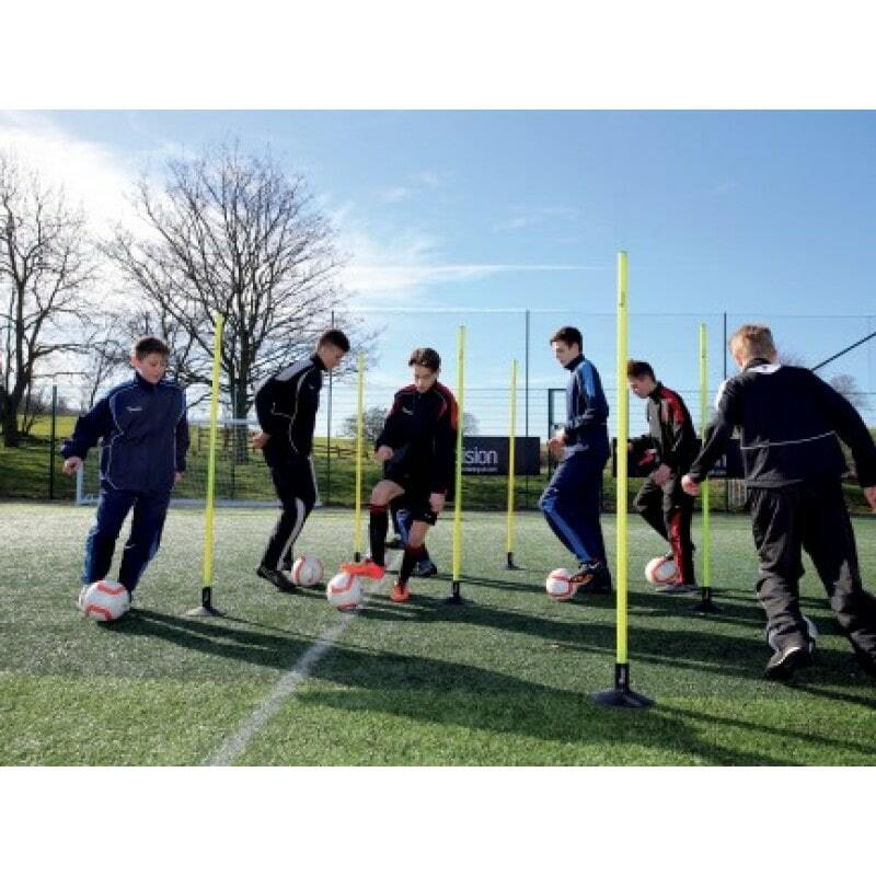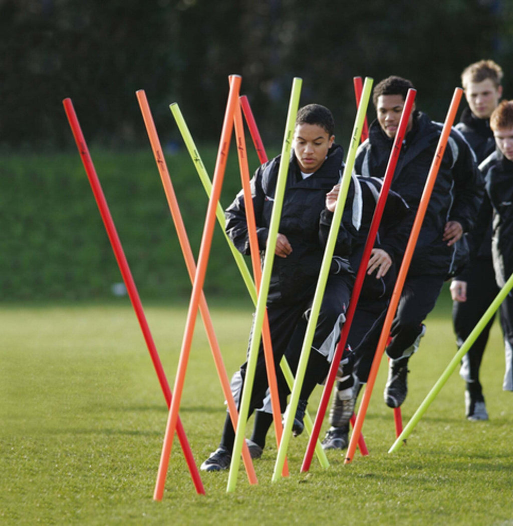 Med gummistativet kan du använda tränarstavar på hårda ytor och du behöver inte göra hål i gräsmattan. Stativet är tillräckligt tungt och robust för att hålla pinnarna ordentligt upprätt.