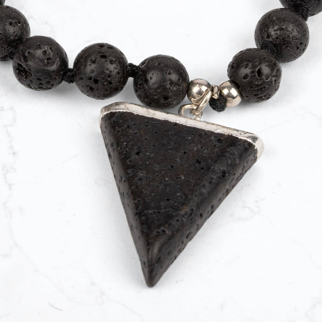Stärk och jorda din anslutning till jorden för att tillåta stabilitet i tider av förändring med detta vackra knutna mala-halsband. Lavastenspärlor är en symbol för styrka och är kända för att förbättra vår relation med planeten och alla människor runt omkring oss. Ett briljant halsband för alla som vill stabilisera sitt rotchakra. När rotchakrat är stabiliserat känner du dig trygg och jordad. Energin i lavastenen kan också hjälpa bäraren av halsbandet att övervinna ilska och negativitet och ersätta dem med mod och ett positivt tänkesätt.