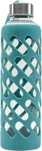 En dricksflaska i glas är ett hälsosamt och miljövänligt val. Sure Grip silikonlocket skyddar flaskan och säkerställer ett stadigt grepp.