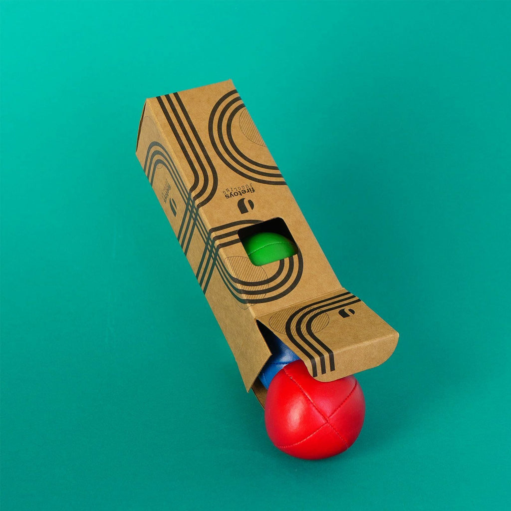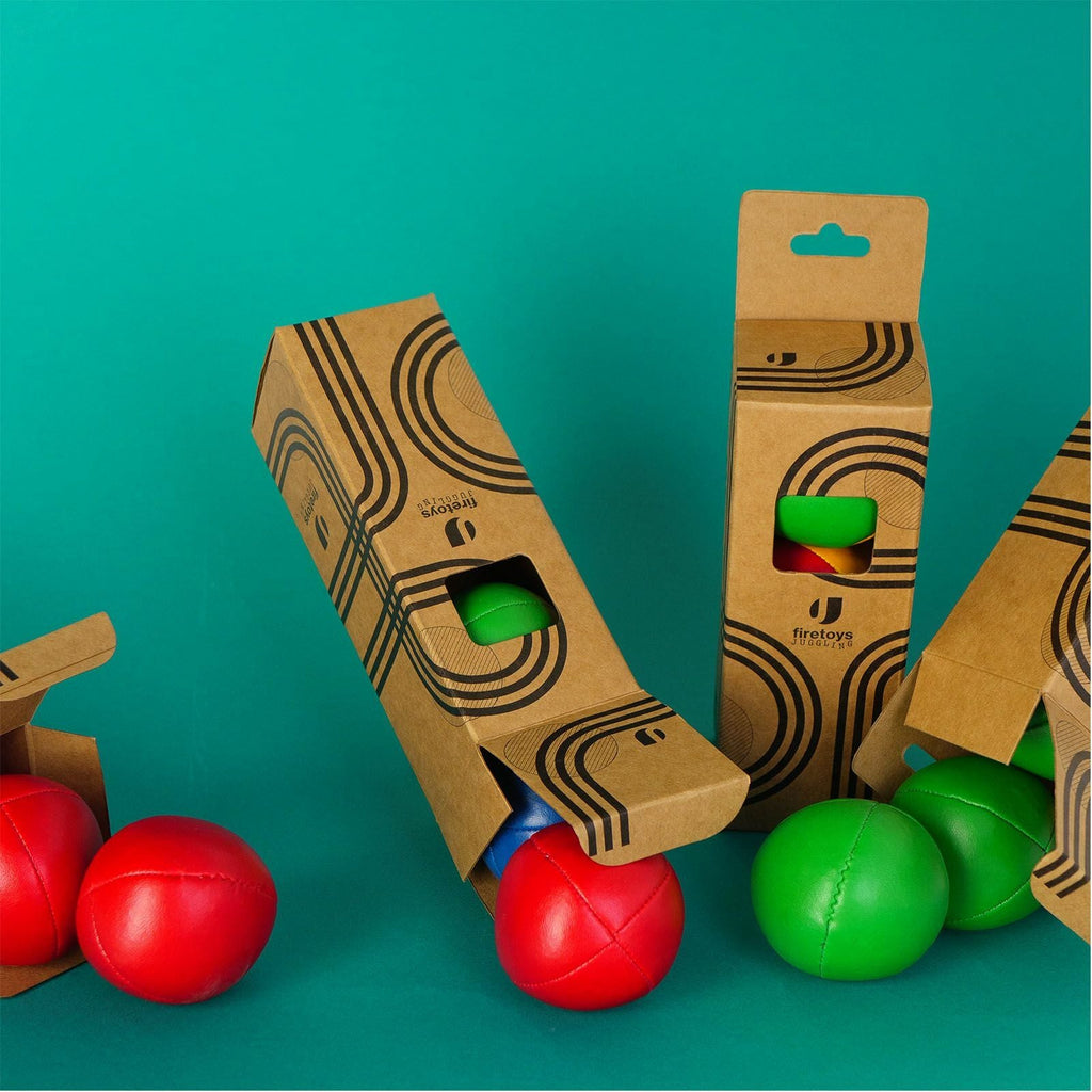 De 120 g jongleringsbollarna i standardstorlek passar de flesta cirkusentusiaster. Setet innehåller 3 bollar.Juggling utvecklar effektivt hand-öga-koordinationen. Detta roliga spel passar alla, från barn till vuxna. Du kan börja träna med två eller tre bollar och lägga till fler när dina färdigheter ackumuleras. Att jonglera två set ger många utmaningar även för de skickliga jonglörerna. Tack vare det färgglada mönstret är bollarna lättare att uppfatta i luften. 4 färgkombinationer att välja mellan.
