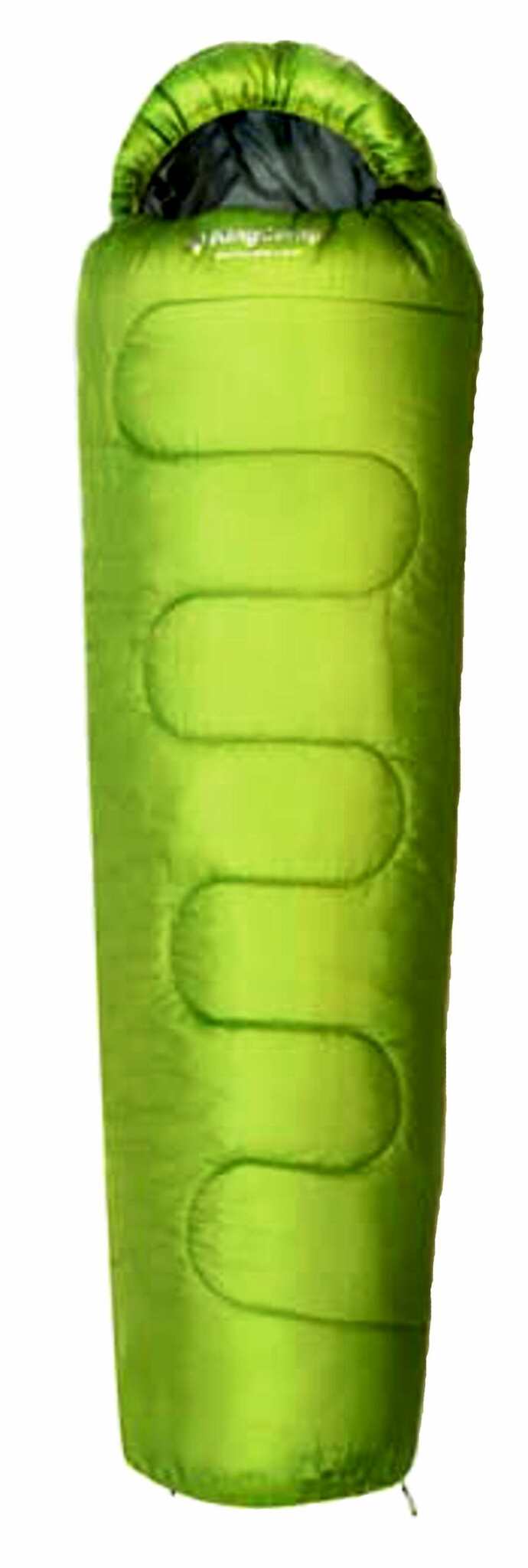 Sovsäckens yttertyg är 190T polyester och fyllningen är varmloftfiber 1x 125 g/m2 . Innermaterialet är en polybomullsblandning som känns skön mot huden. Den justerbara huvan förhindrar att värmen rinner ut. En tvåvägsdragkedja gör att fötterna kan ventileras. Två sovsäckar kan dras ihop.