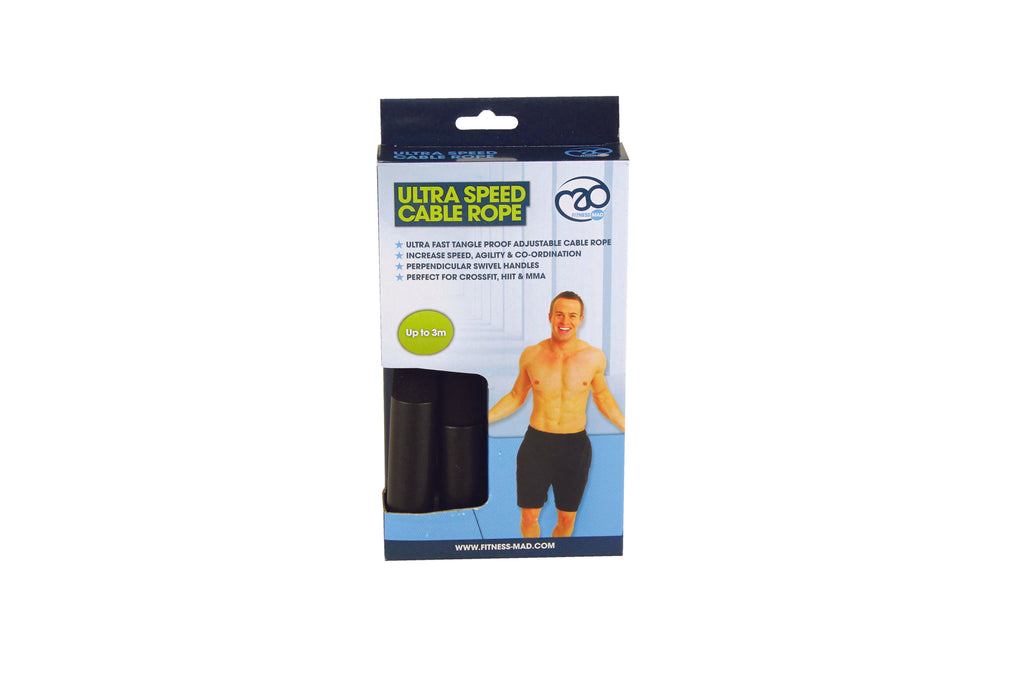 Ultrasnabbt trasselfritt kabelrep, idealiskt för double unders, crossfit, HIIT & MMA-träning för att öka snabbhet, smidighet och koordination. Långa, bekväma skumhandtag, matchade med en vinkelrät svängningskombination med en snabbjusterbar belagd stålkabel för en blixtsnabb hoppupplevelse.