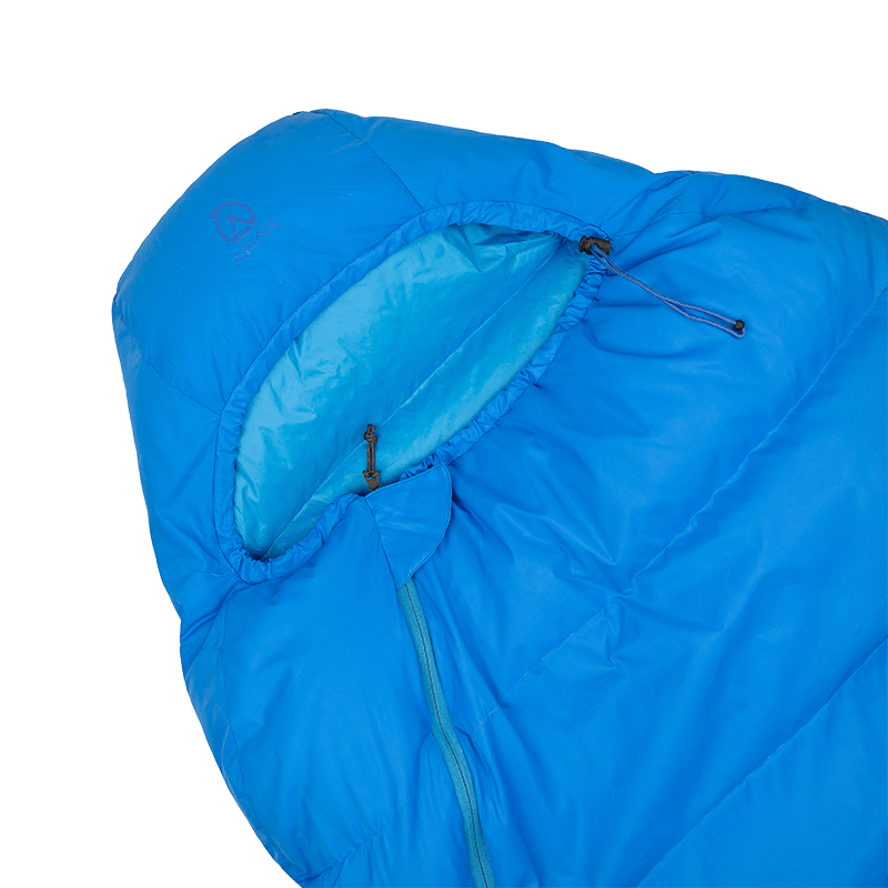 Tvättråd: Ventilation rekommenderas alltid efter användning. Tvätta separat från annan tvätt upp och ner. Se till att blixtlås och kardborreband är stängda. Använd ett milt rengöringsmedel, undvik att använda sköljmedel. För att undvika att skada fjädrarna får sovsäcken inte vridas för att torka. För bästa resultat använd en torktumlare, torktumlaren kommer att fluffa dunet och göra det jämnt fördelat. Förvara utan skyddspåse.