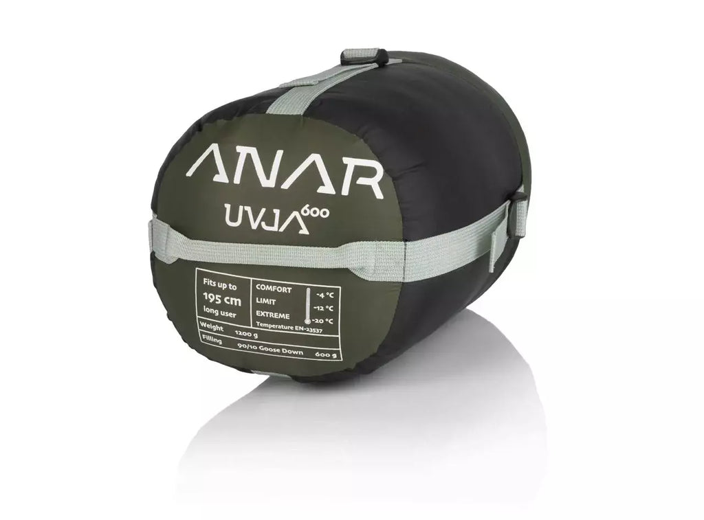 Den populära Uvja 600 sovsäcken har fått en ny stilren look. Dunsovsäcken är designad för fyra säsonger och har en formad och åtdragen huva och en krage som förhindrar värmeförlust. Väskans Ripstop ytmaterial är DWR-behandlat för att vara vattenavvisande. Sovsäckens innertyg känns skönt mot huden och orsakar inte svett. Inuti väskan finns en liten ficka för telefonen så att kylan inte tär på batteriet under natten. Tack vare den högkvalitativa, tvåvägs YKK-dragkedjan kan du även ventilera väskan från foten vid behov.