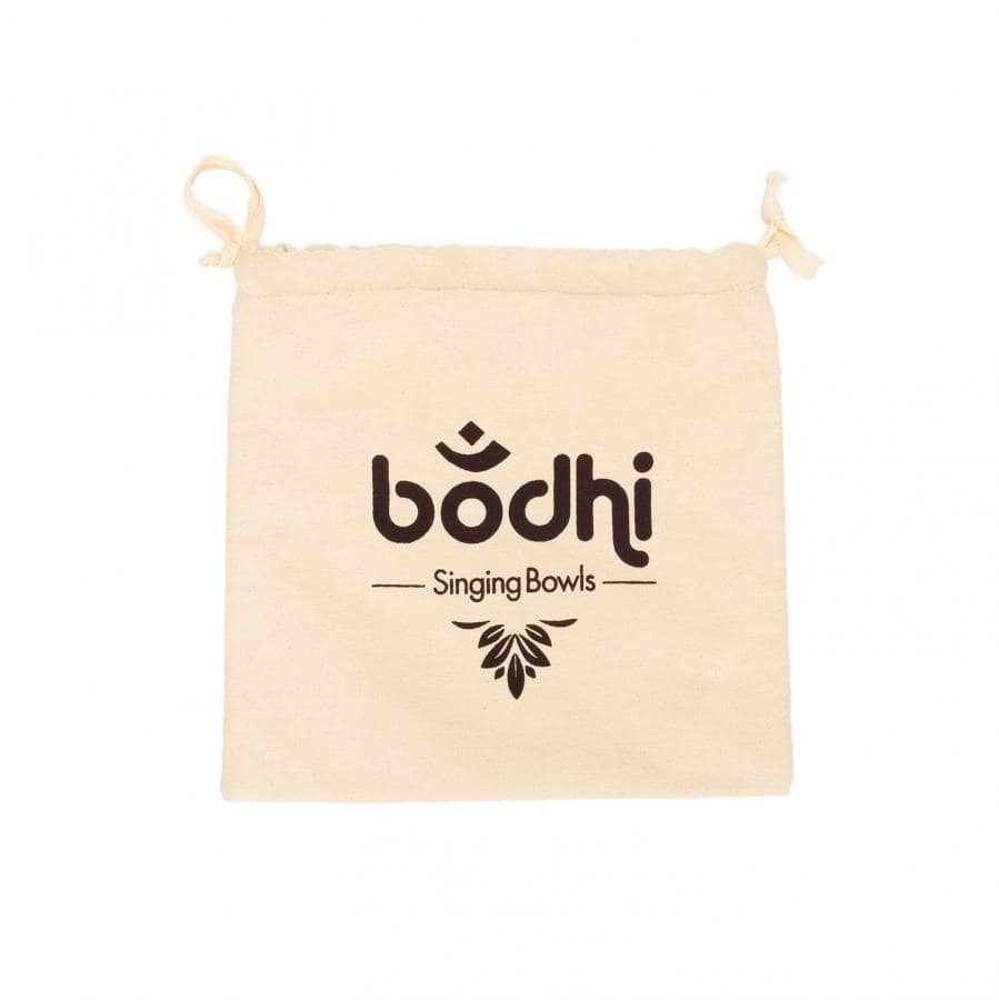 Den naturliga vita påsen är gjord av bomull. Den har ett tryck "Bodhi - Singing Bowls" på sidan. Insidan av väskan är fodrad med mjuk sammet i vinröd färg. Väskan kan stängas med dragsko och det finns tillräckligt med plats för sångskålen, dess kudde och systemet. Väskan fungerar även som en fantastisk presentask för sångskålar.