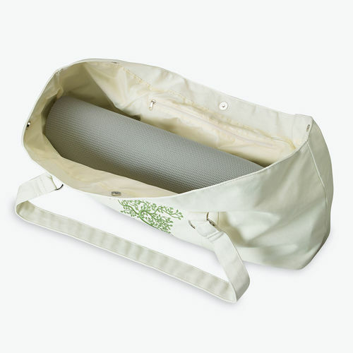 The Tree of Life Yoga Mat Bag har en snabb och bekväm magnetisk fäste. Små fickor med dragkedja för nycklar och telefon på sidan och insidan av väskan. De 84 cm långa remmarna gör att du kan bära väskan på axeln. På grund av sin större storlek är väskan även lämplig för att bära de flesta Pilatesmattor. Maxbredden på mattan är 61 cm.