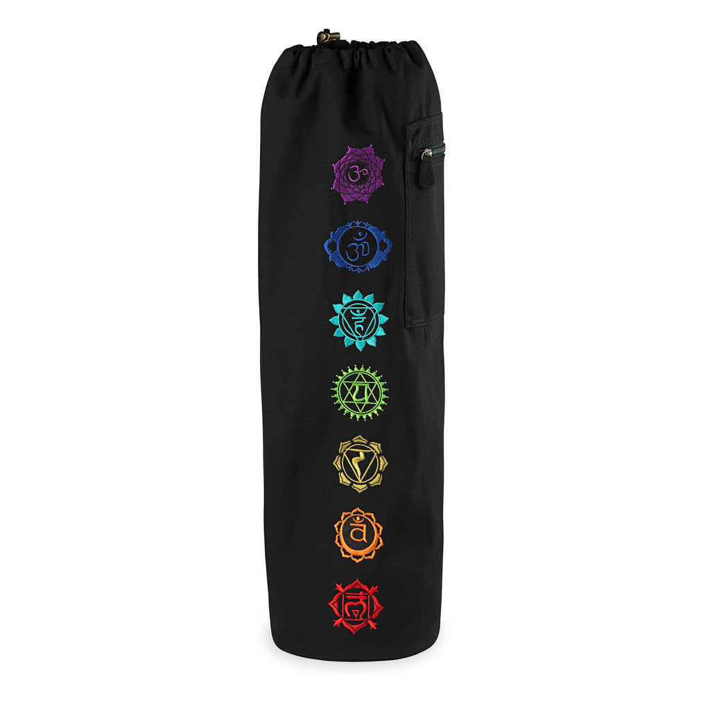 Snygg yogamattaväska med broderade symboler av de 7 chakrana.